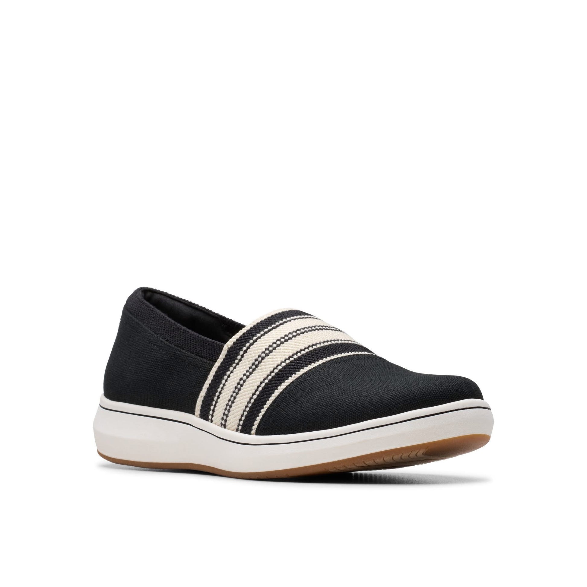 Clarks Cloudsteppers shoe with synthetic denim upper. Cushioned removable insole to accommodate a custom orthotic. Lightweight and very comfortable.