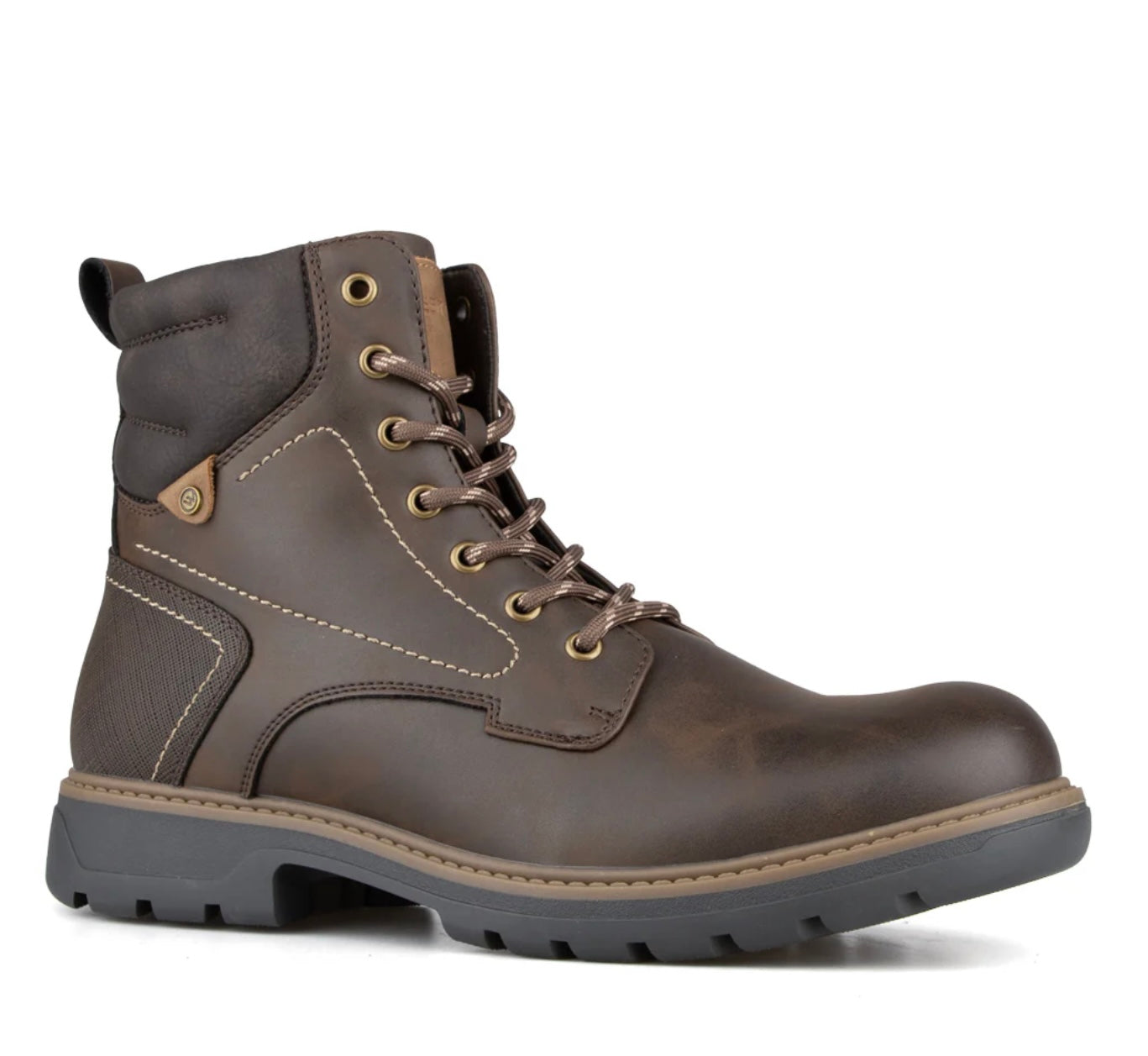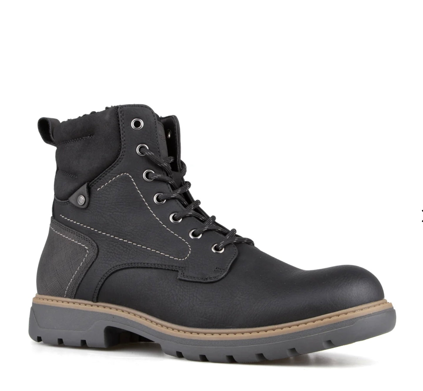 These boots are a synthetic upper with fleece lining. They have laces and a side zipper for easy access and custom fit. It has a deep lug outsole and removable insole to accommodate custom orthotics.