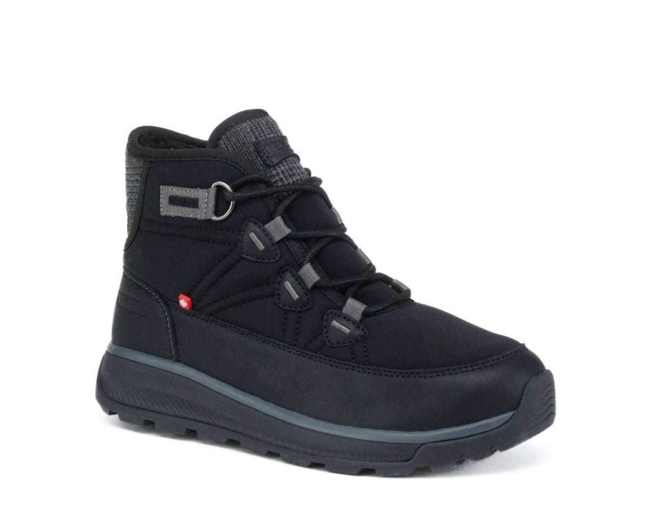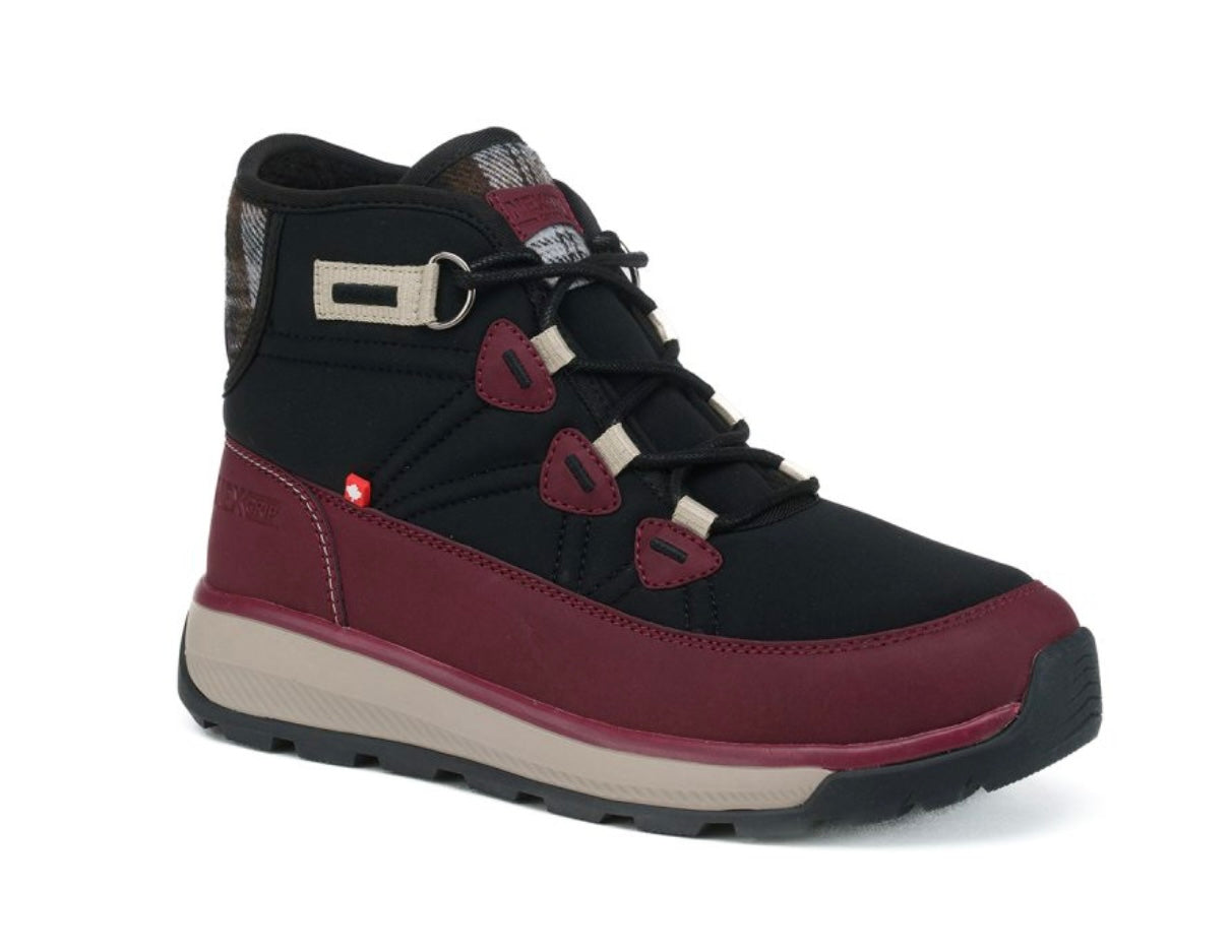 This boot is insulated, temperature rated to-35C, waterproof upper, a side zipper and 50% merino wool lining. It has a rubber sole with ice grip and flip over cleat for protection on ice.